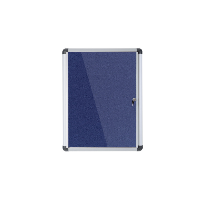 5 Star Glazed Noticeboard with Swing Door Locking Aluminium Frame Blue Felt 900x1200mm