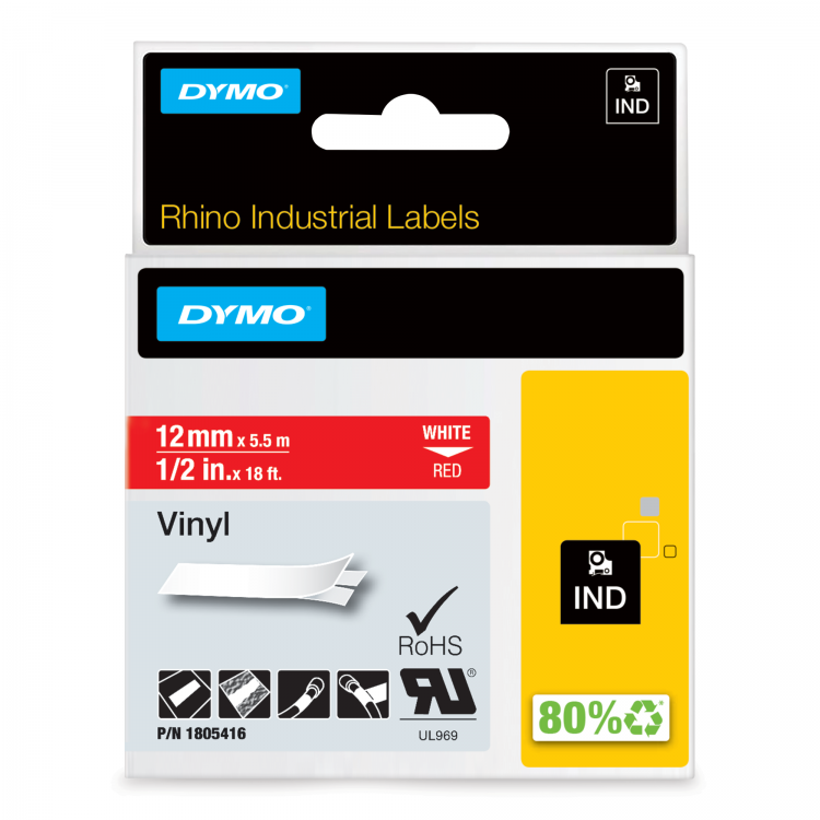 DYMO Rhino Industrial Labels are a perfect solution for general labelling in and around any facility where general identification and supplementary information are needed. These labels are ideal for warning and safety messages, patch panels/face plates and general labelling. The strong adhesive and the flexible material make this vinyl tape a reliable selection for many applications.