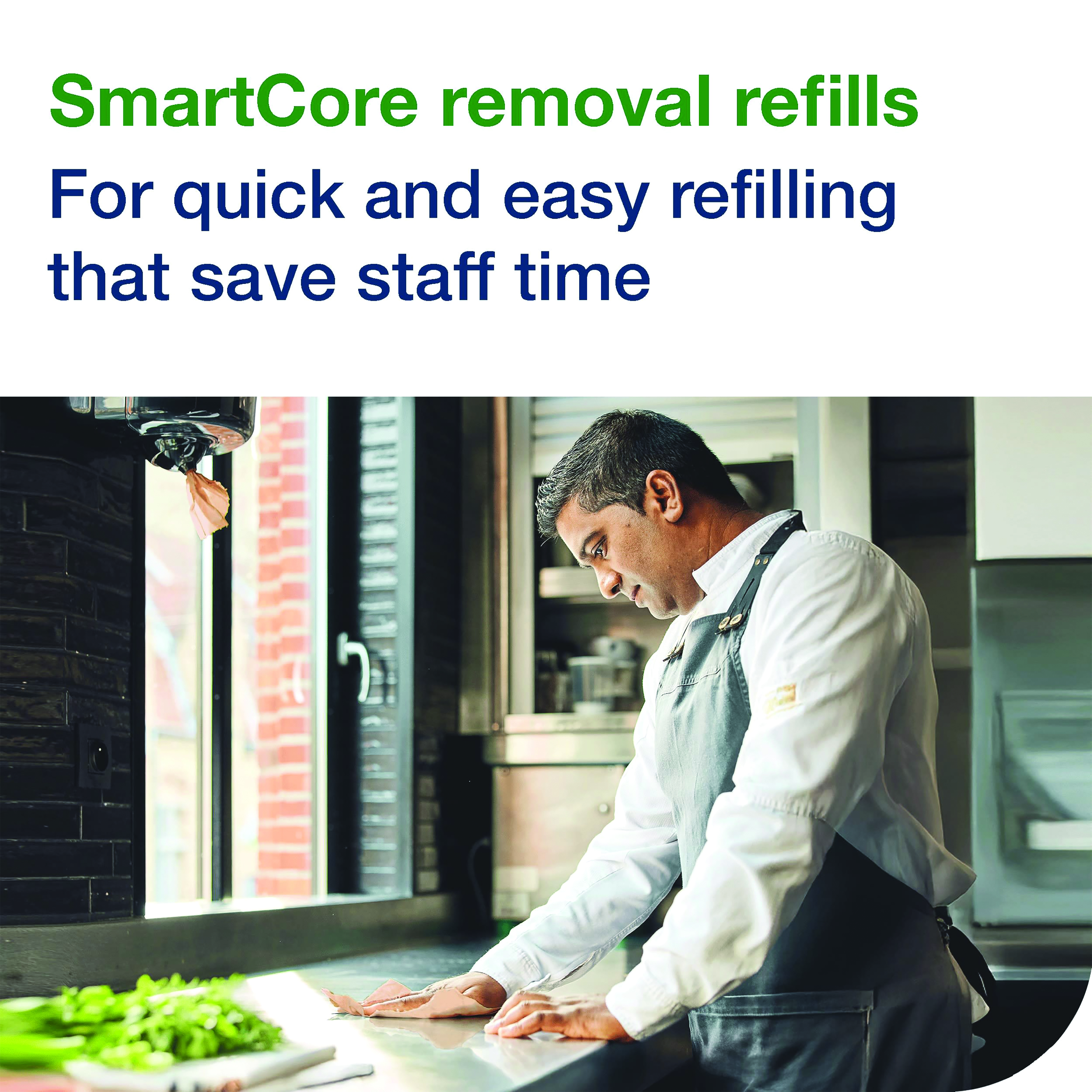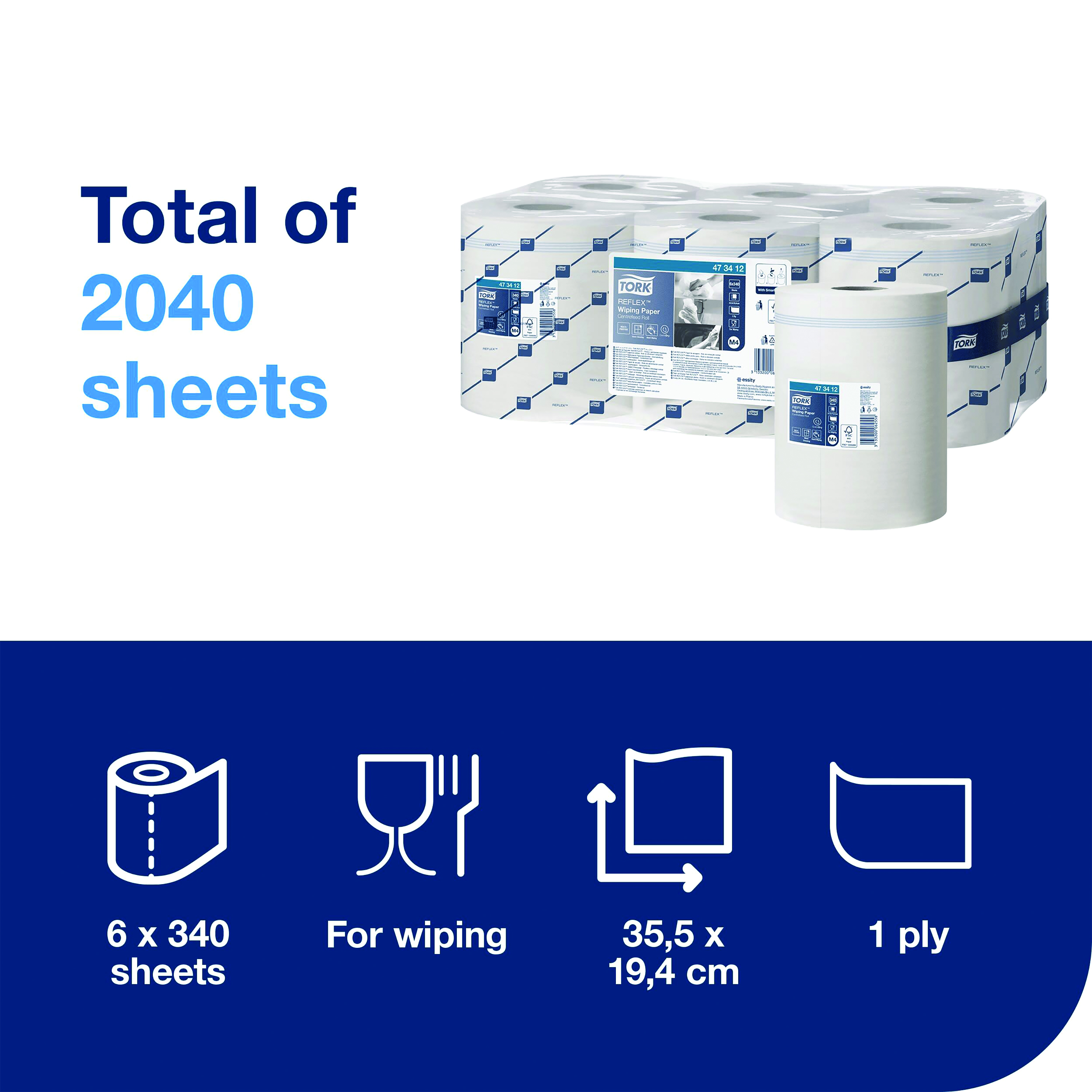 Designed for use in the Tork M4 Reflex dispenser, this strong and absorbent multipurpose wiping paper is suitable for wiping and drying surfaces, equipment and hands. The centrefeed design reduces consumption by up to 37% and minimises the risk of cross-contamination. The 1-ply, industrial paper roll features QuickDry technology and SmartCore core removal and comes on 114m rolls with 340 sheets per roll. Supplied in a pack of 6 rolls.